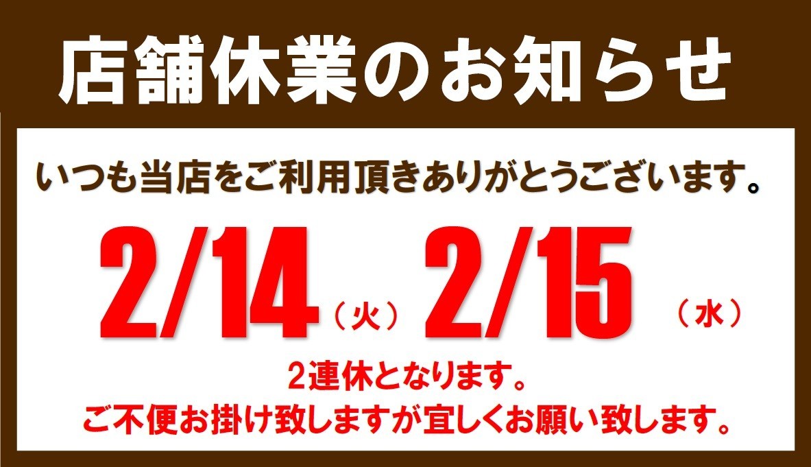 2/14(火) 2/15(水)は店舗休業致します。