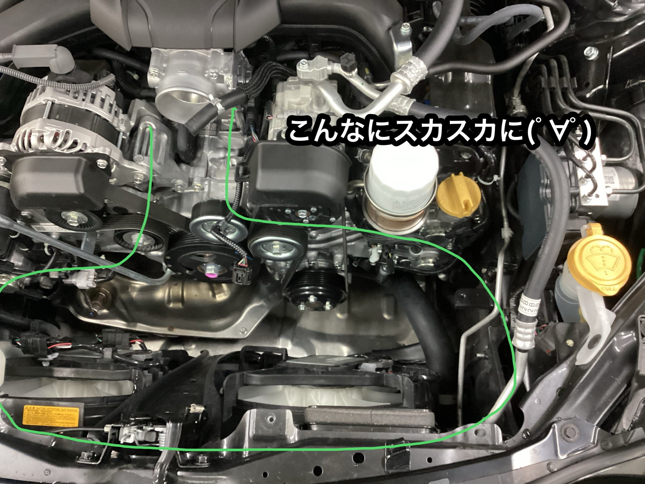インテークのキラキラしたパイピングとシリコンバンドのせいか少しだけチューニングカーぽく見えます(笑)