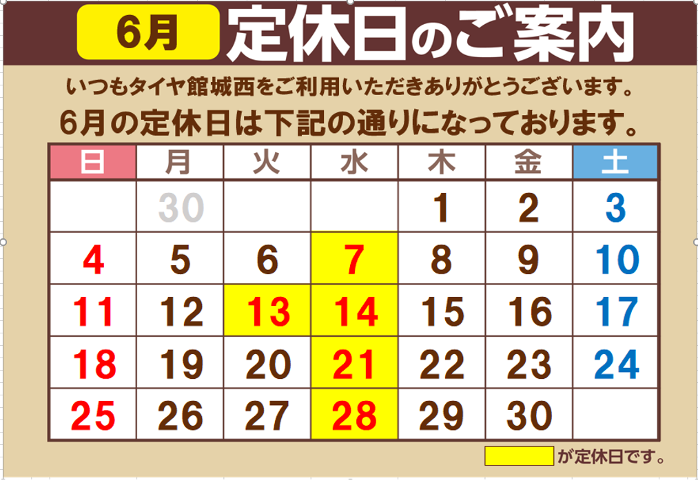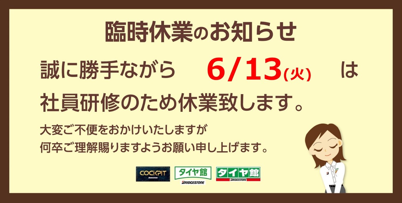 6/13(火)、14(水)は休業となります。