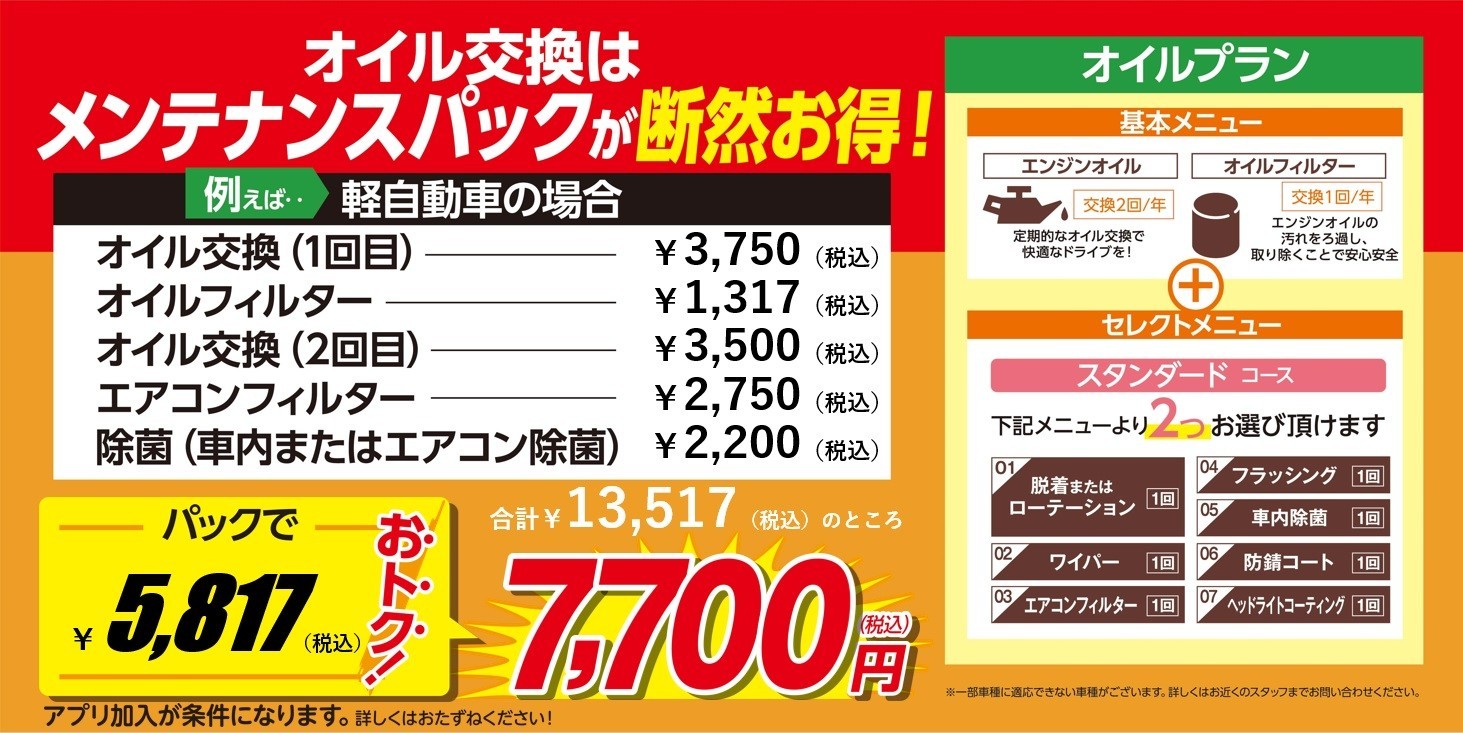 ※但しパック利用にはタイヤ館アプリ(無料)の登録が必要です