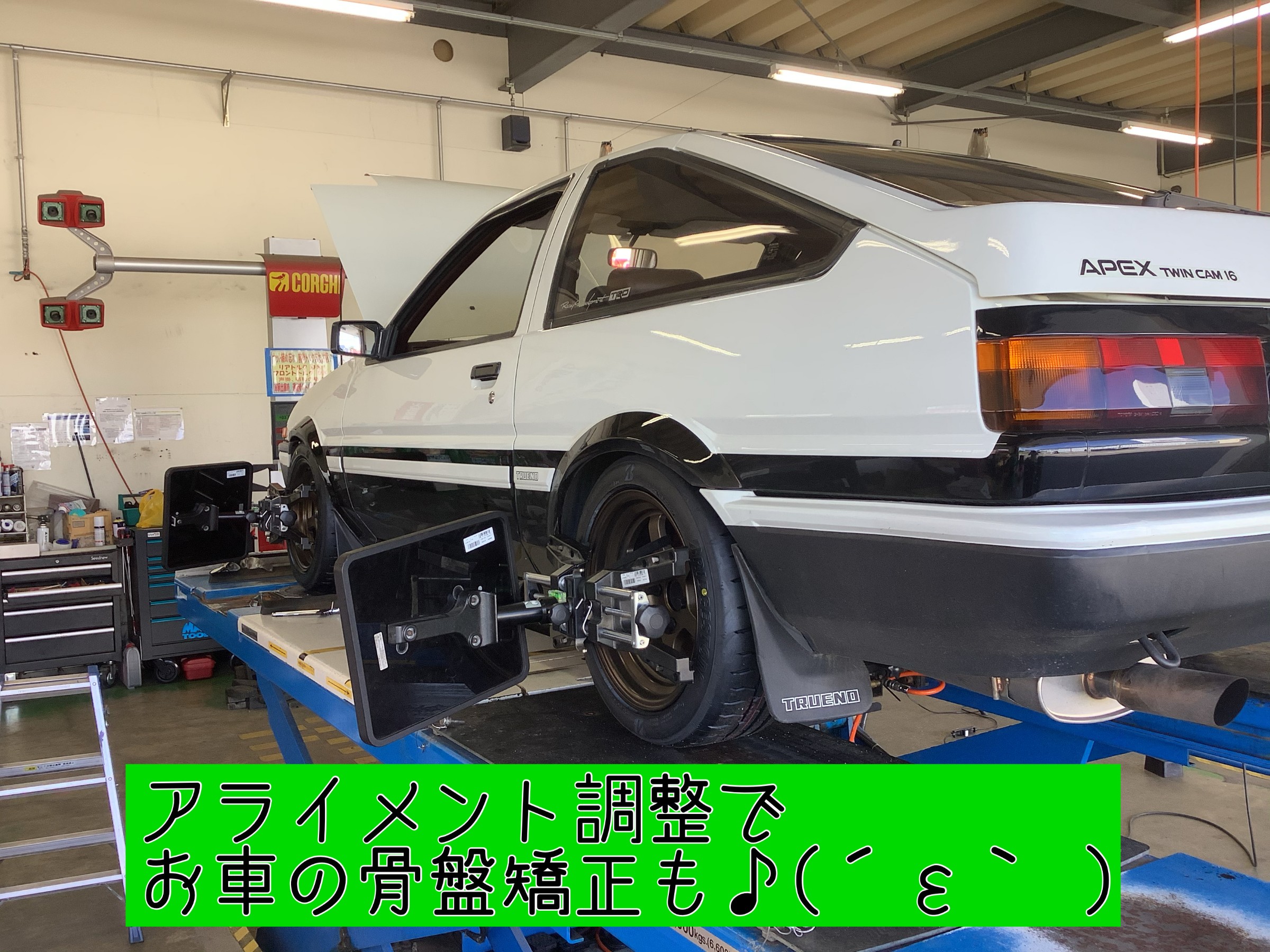 アライメント調整「お車の骨盤矯正」は当店にお任せください(=゚ω゚)ノ