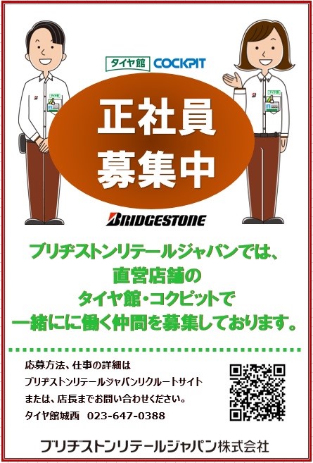 タイヤ館では正社員・常勤アルバイトを募集しています(^^)/