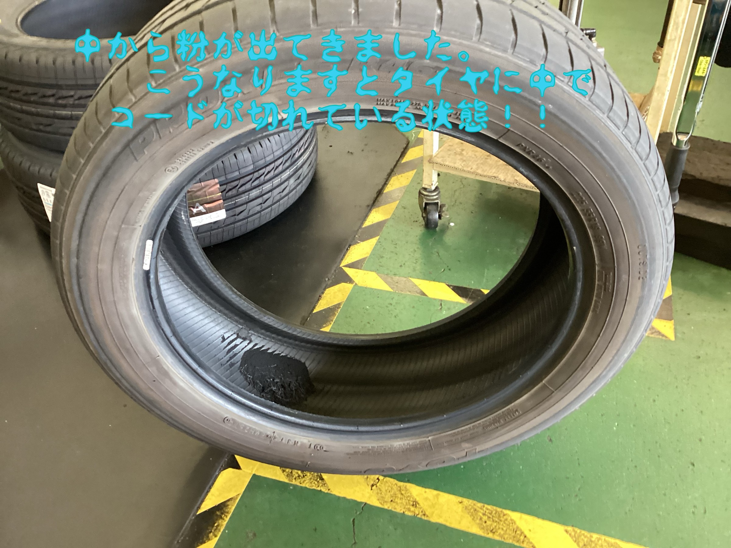 タイヤの中でワイヤーが切れてしまっている状態です(T_T)