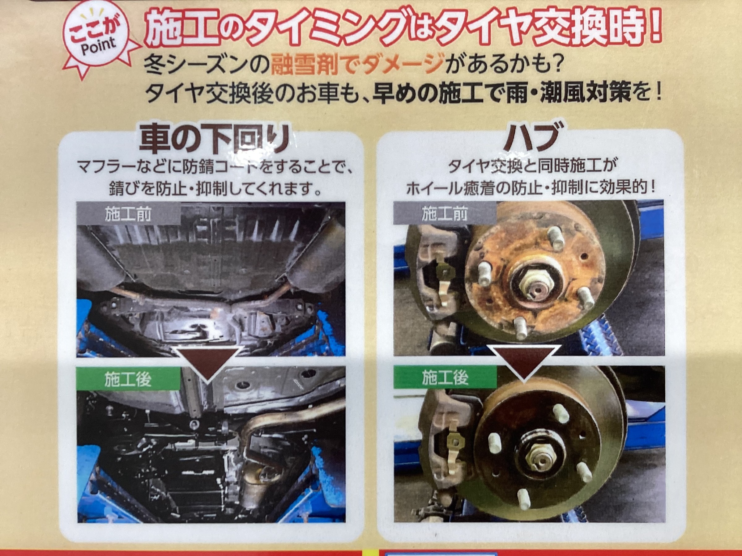 山形 下条町 タイヤ館城西 お車の防錆、おススメです!