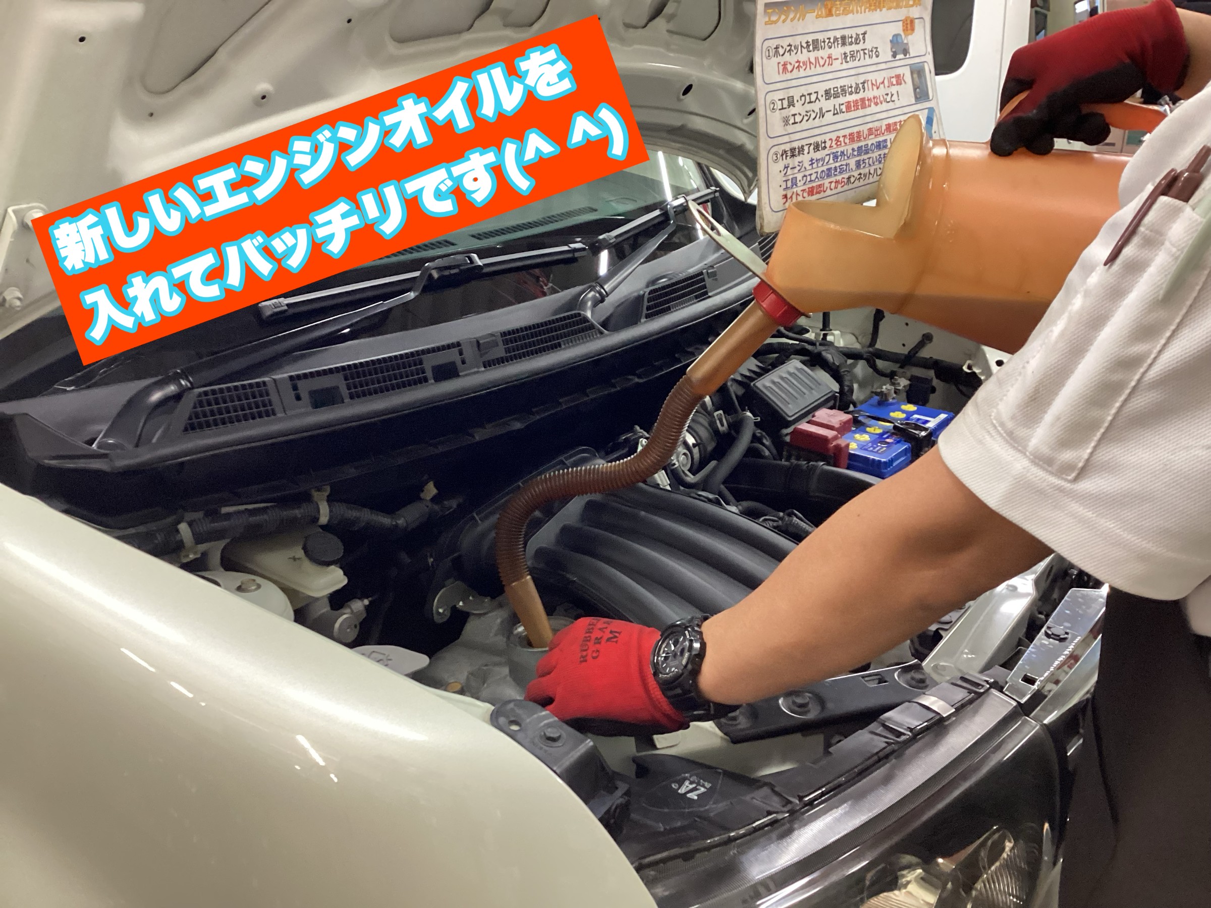 「オイル交換するの忘れてた、急いできたけど今からお願いできるかな?(T_T)。」