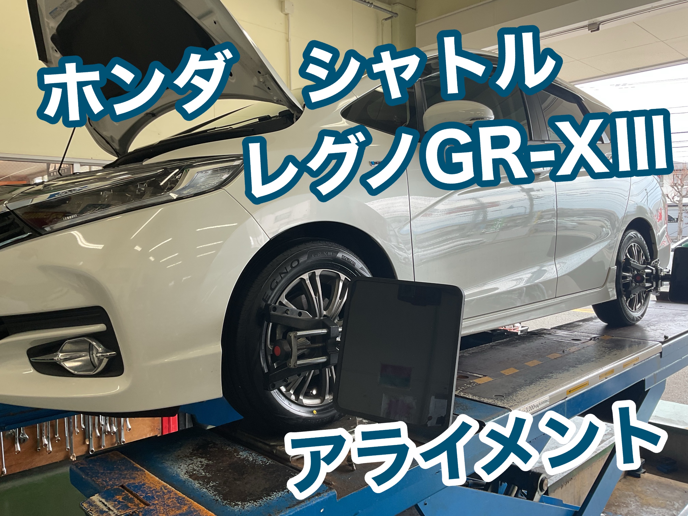 【ホンダ シャトル】タイヤ交換&アライメント作業【ブリヂストン製レグノGR-XⅢ新設サイズ 185/60R15】