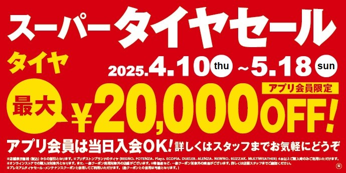 現在、開催のイベント【スーパータイヤセール】は5/18(日)までの