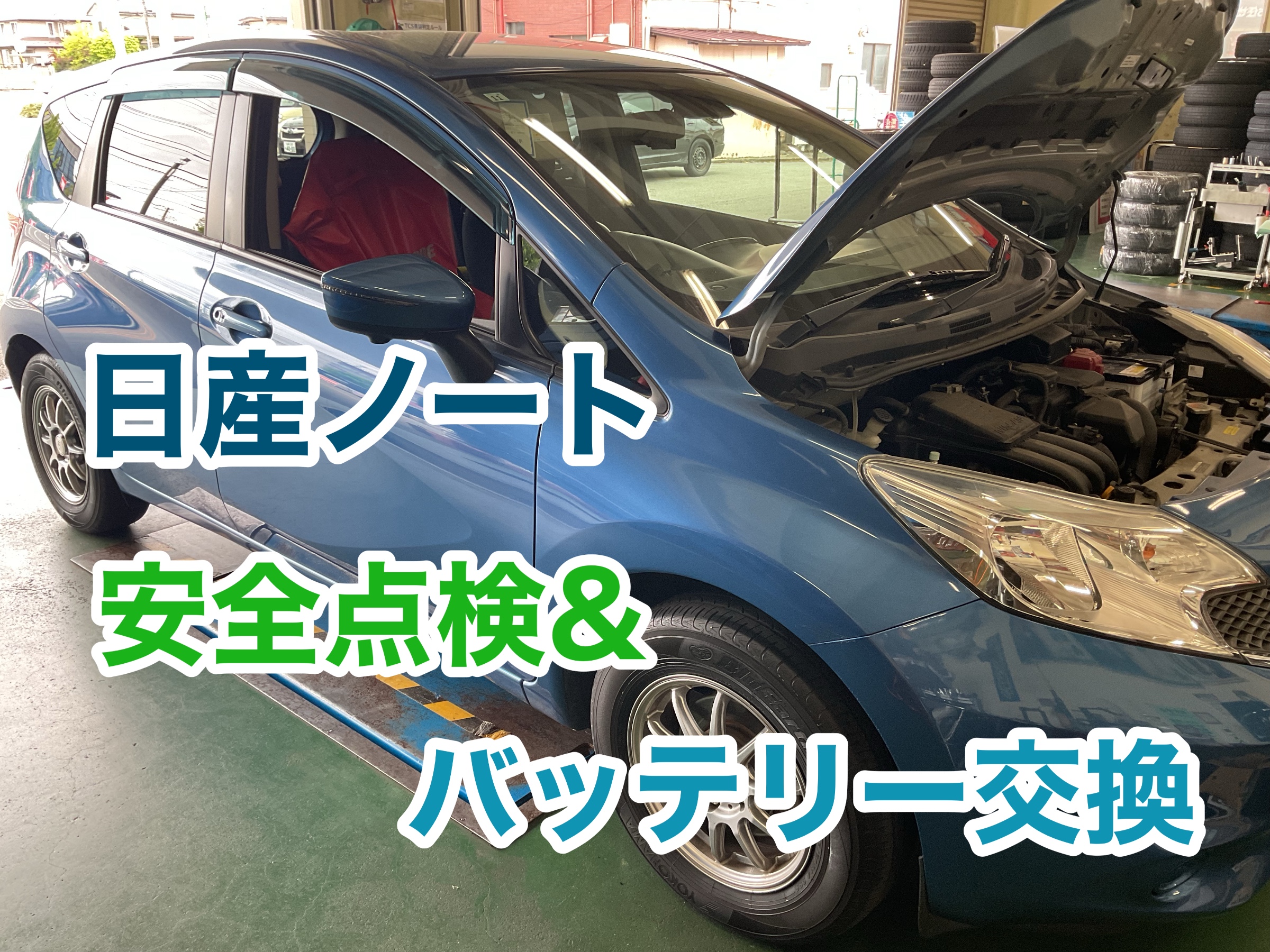 今回は、日産ノートの安全点検&バッテリー交換作業を実施