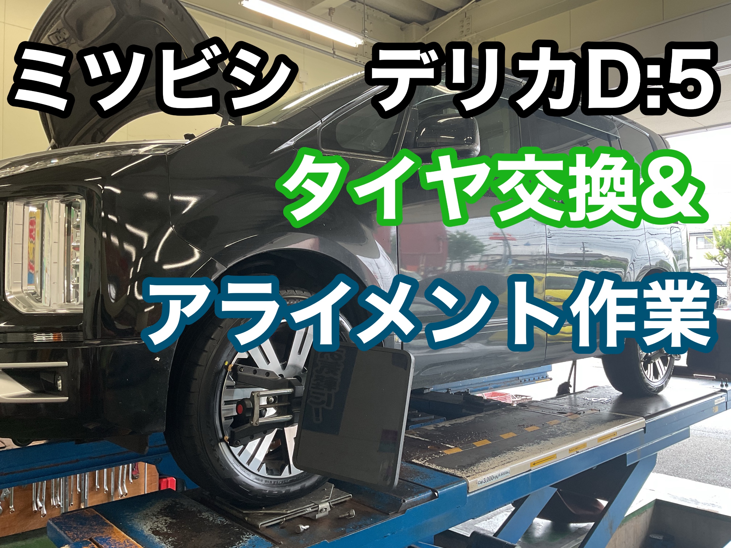 今回は、ミツビシ・デリカD:5のタイヤ交換作業&アライメント作業を実施。