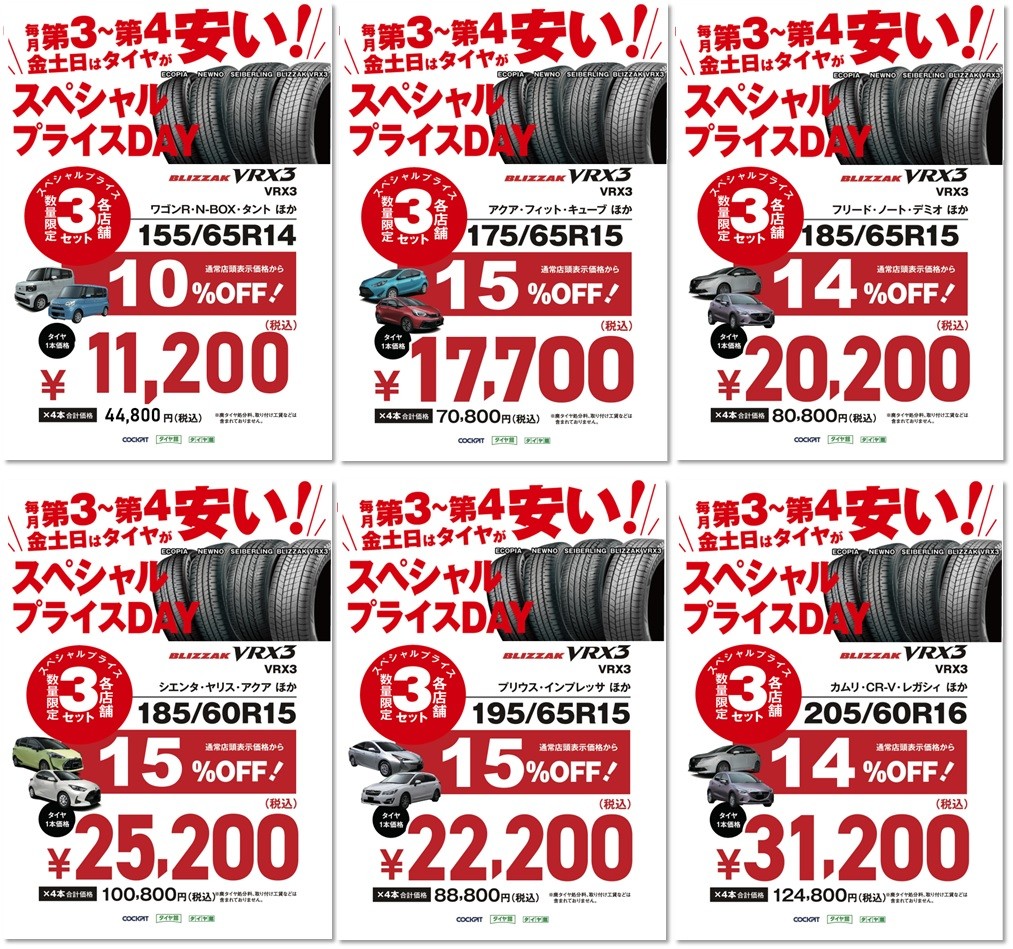 また、今回よりスタッドレスタイヤ ブリザックVRX3も追加となっております!
