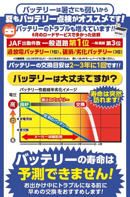 突然のバッテリートラブルが起きない様点検しておきましょう!