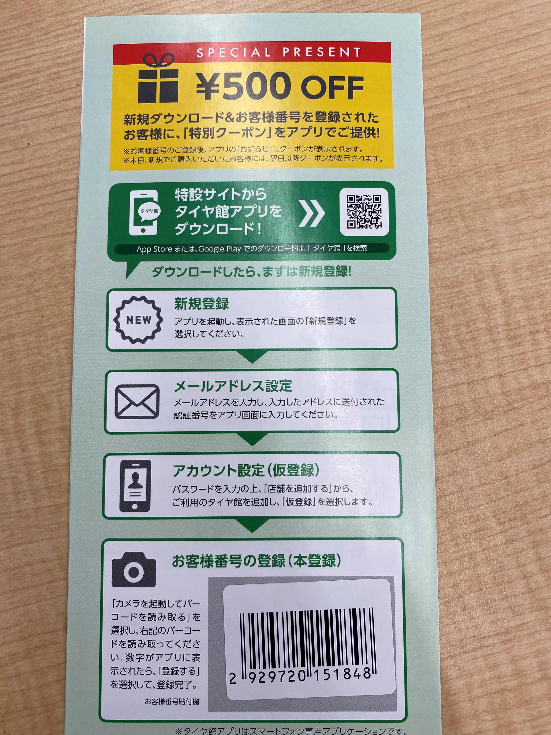 話変わりますが、タイヤ館のアプリが出来ました。まだまだ浸透していないので、是非ご登録してみてください。