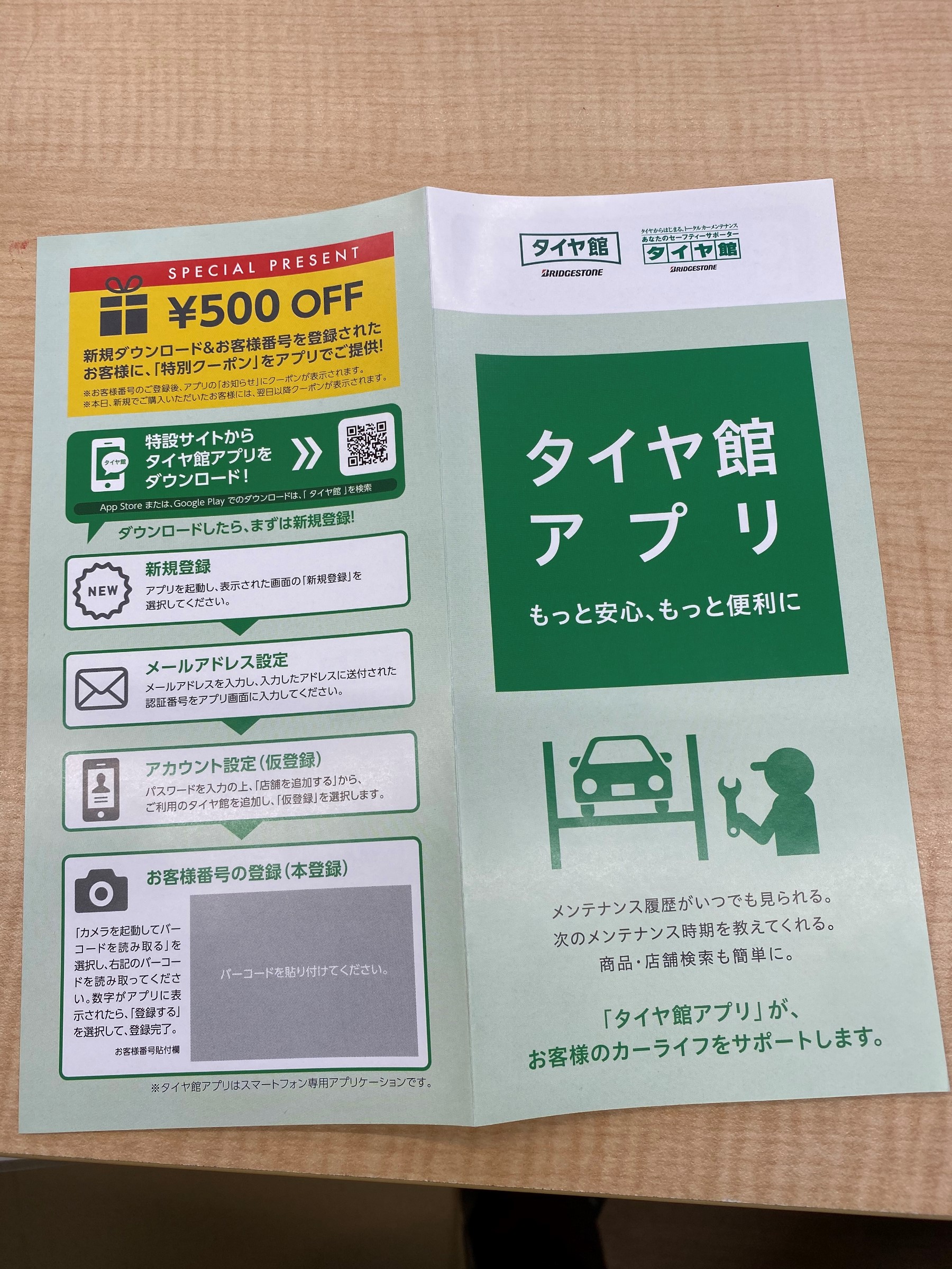 是非、タイヤ館アプリをクドイ様ですが、是非取り込んでみてください。