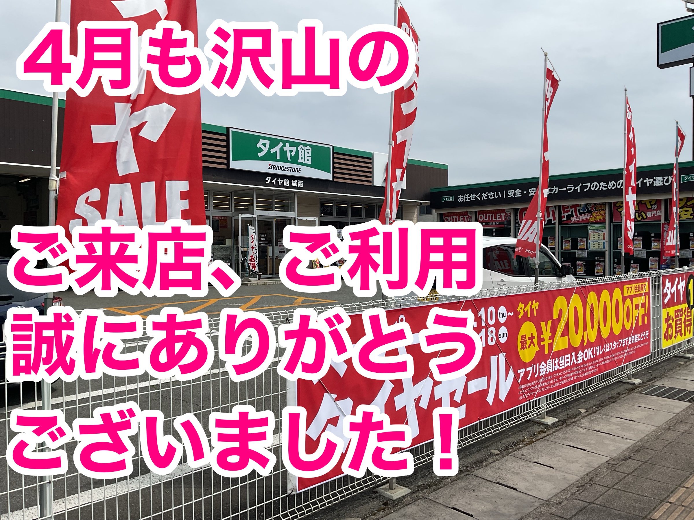 いつもタイヤ館城西をご利用頂きまして誠にありがとうございます! 今月も沢山のご来店を頂戴いたしました! イベントも大好評を頂戴し、お客様の待ち時間が少しでも 少なくなるようご予約にて作業をさせて頂いております。 5月もイベントを控えております。 今回ご来店が難しかった方は4月にご期...