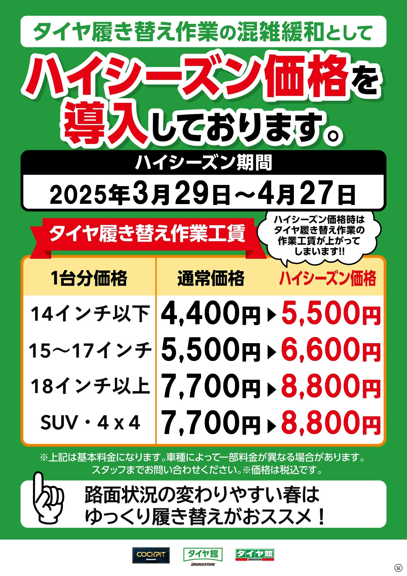 【明日29日よりタイヤ交換はハイシーズン価格になります】