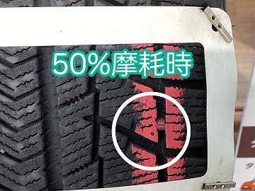 最近の路面凍結などで滑って怖い思いしてませんか? 「タイヤ履き替えお家でしてもらったけど((+_+)) 「チョット不安大丈夫かな。」と不安なお客様!! タイヤの点検ご来店ください。 タイヤの溝や ↑ ↑ 溝の半分50%の所に印が付いています。 こちらまで減ってしまうとスタッドレスタイヤ使用限度ま...