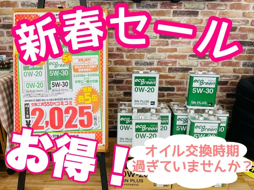 今日から【新春セール】開催しております☆*:.。. o(≧▽≦)o .。.:*☆ 数量限定ではありますが、お得な缶オイルが新春セールでさらにお得になっております! 0W-20 5W-30 先着各5缶! 予約なしでも作業出来ますのでお気軽にご来店くださいね(*´꒳`*) ★皆様のご来店お待ちしております★