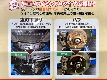 いつも当店のWEBをご覧いただきありがとうございます。 突然ですが、お客様のお車はしっかり防錆コーティングされてますか? ”車を買ってから一度もしたことがない…” そんなお客様には是非おすすめしたいのが→ 当店の防錆コーティング施工です! 上の画像の通り、施工前の錆や腐食のひどい状態から...