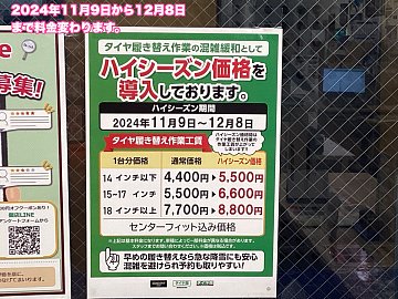 ホイール付きタイヤ履き替え作業料金が変わります。