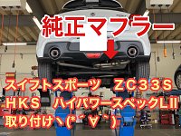マフラー交換も(=゚ω゚)ノ 当店にお任せ下さい(=゚ω゚)ノ スイフトスポーツZC33S HKSハイパースペックLⅡ