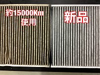 オイル交換でご来店頂いたお客様 交換と同時に車の無料点検を実施致しました。 点検したところ前回のエアコンフィルター交換から約15000Km使用していました。 お客様にお伝えし 「そういえば最近エアコンの匂いが気になる」 というお声もあり実物も確認して頂き 確認して頂いたところ 「こんな...