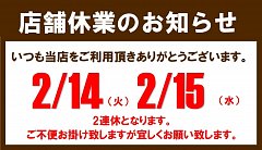 2/14(火) 2/15(水)店舗休業致します。