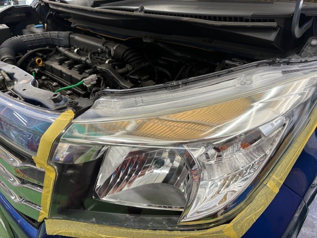 研磨からしっかり行うことで新品時のクリアなヘッドライトが戻ってきました!