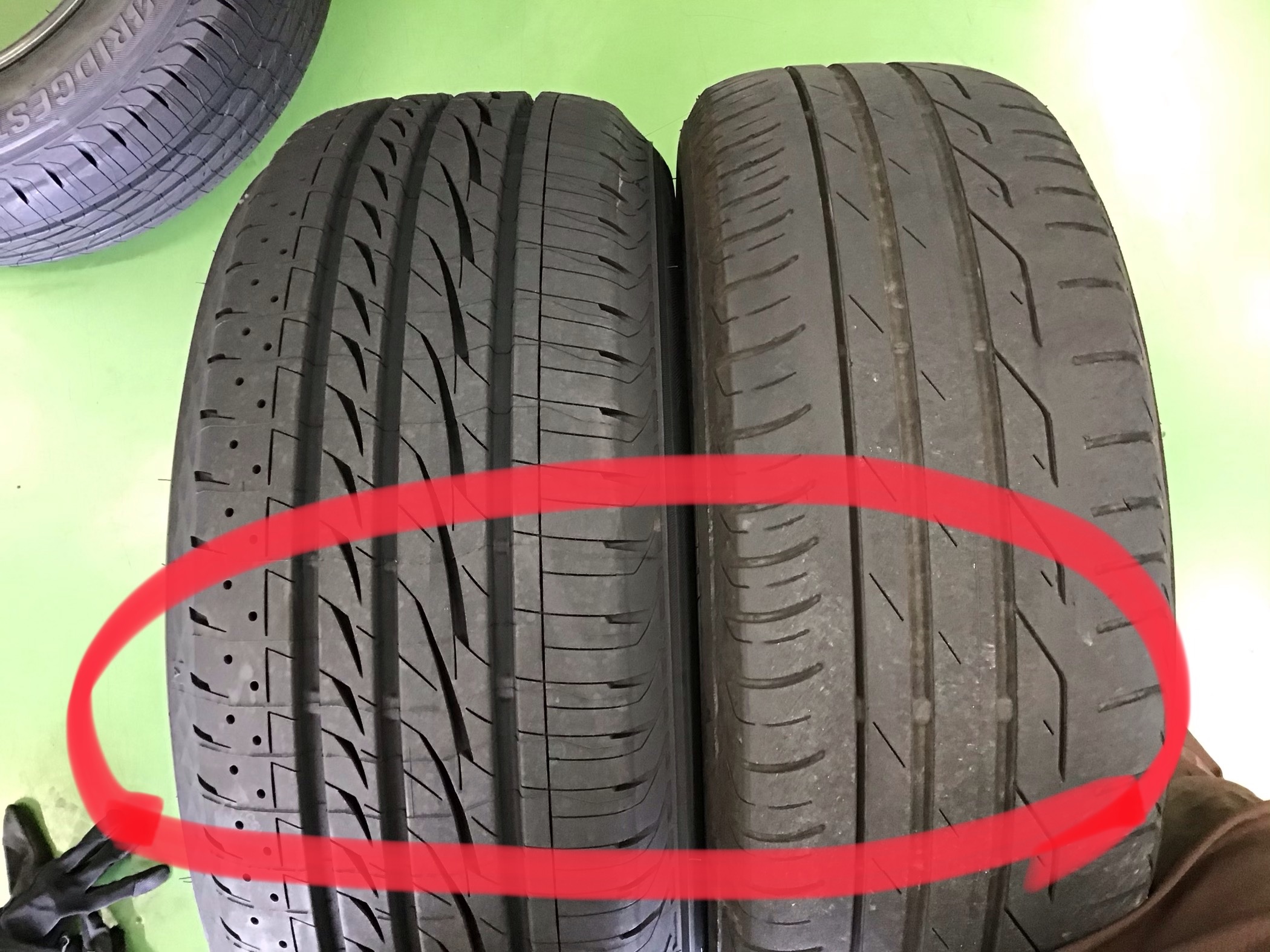 ローテーションに取りかかる前にタイヤの点検をしたところ