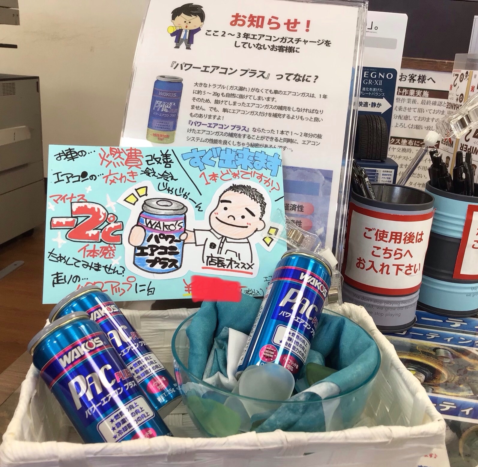残暑厳しいこの夏に‼︎ WAKOS パワーエアコンプラス‼︎ ポスト 2020年8月21日 今月、オススメなのが『ワコーズパワーエアコンプラス』です! ★燃費の向上 ★静粛性の向上 ★冷却能力の向上 ここ2〜3年エアコンガスチャージをしていないお客様! カーエアコン用潤滑添加剤『ワコーズパワーエアコンプラス』で マイナス2℃体感しませんか。。。?