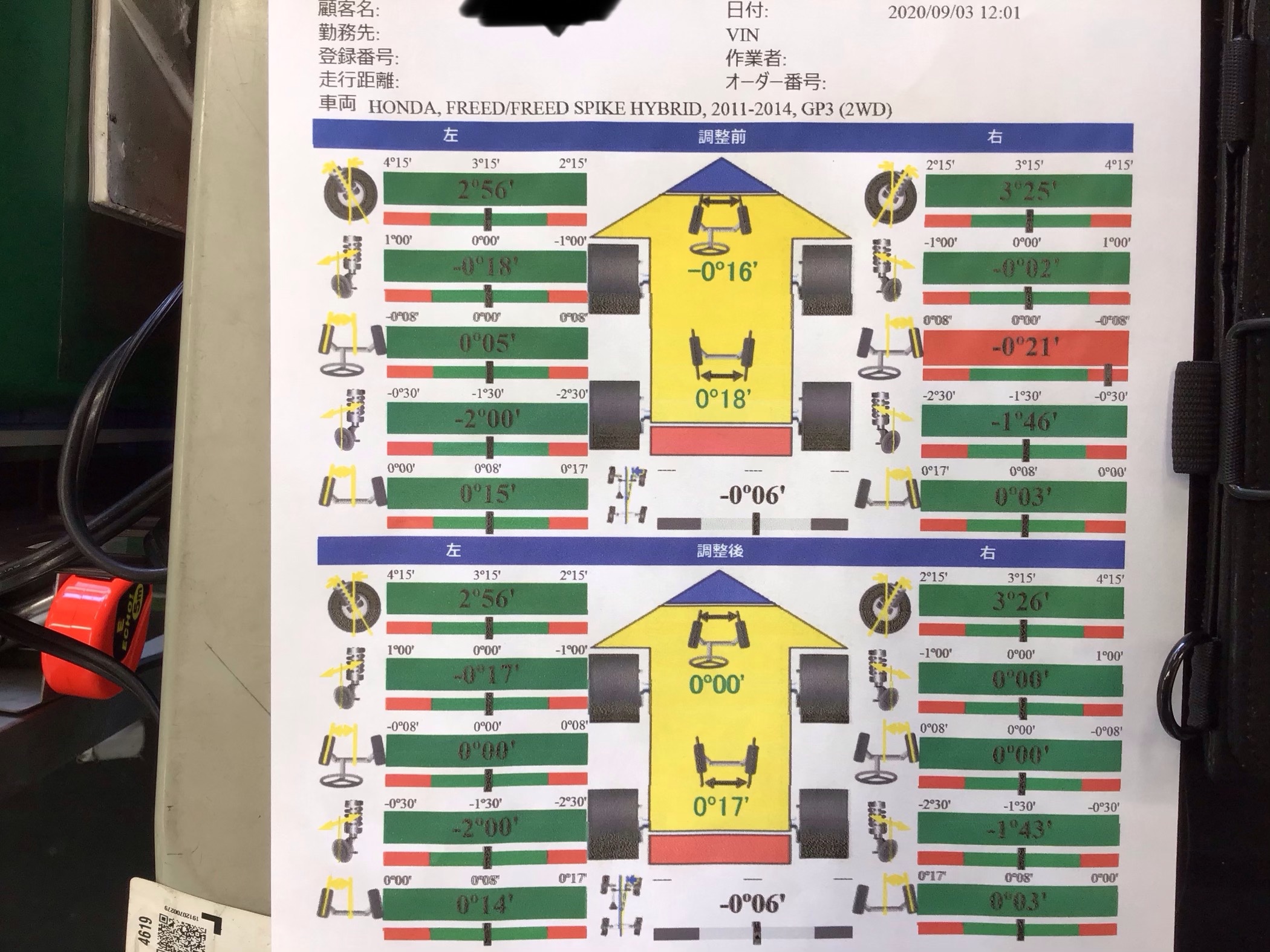 ホンダ/フリード タイヤ&ホイール交換 アライメント調整