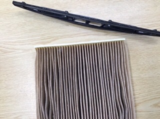 エアコンフィルターにはホコリが付いていて、うしろのワイパーは
