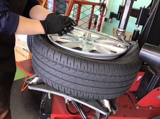 古いタイヤをホイールから外します