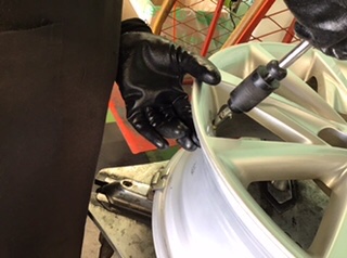 ホイール内側を磨いて、チューブレスバルブを新しく替えます