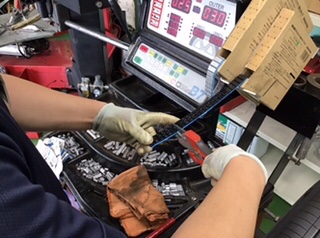 防錆施工も終了しているのでバランスを取り終わったタイヤを取り付けしていきます。