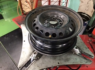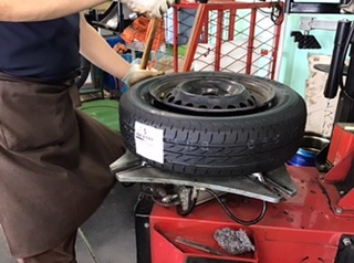 タイヤを外してチューブレスバルブを新しく付け替えます。