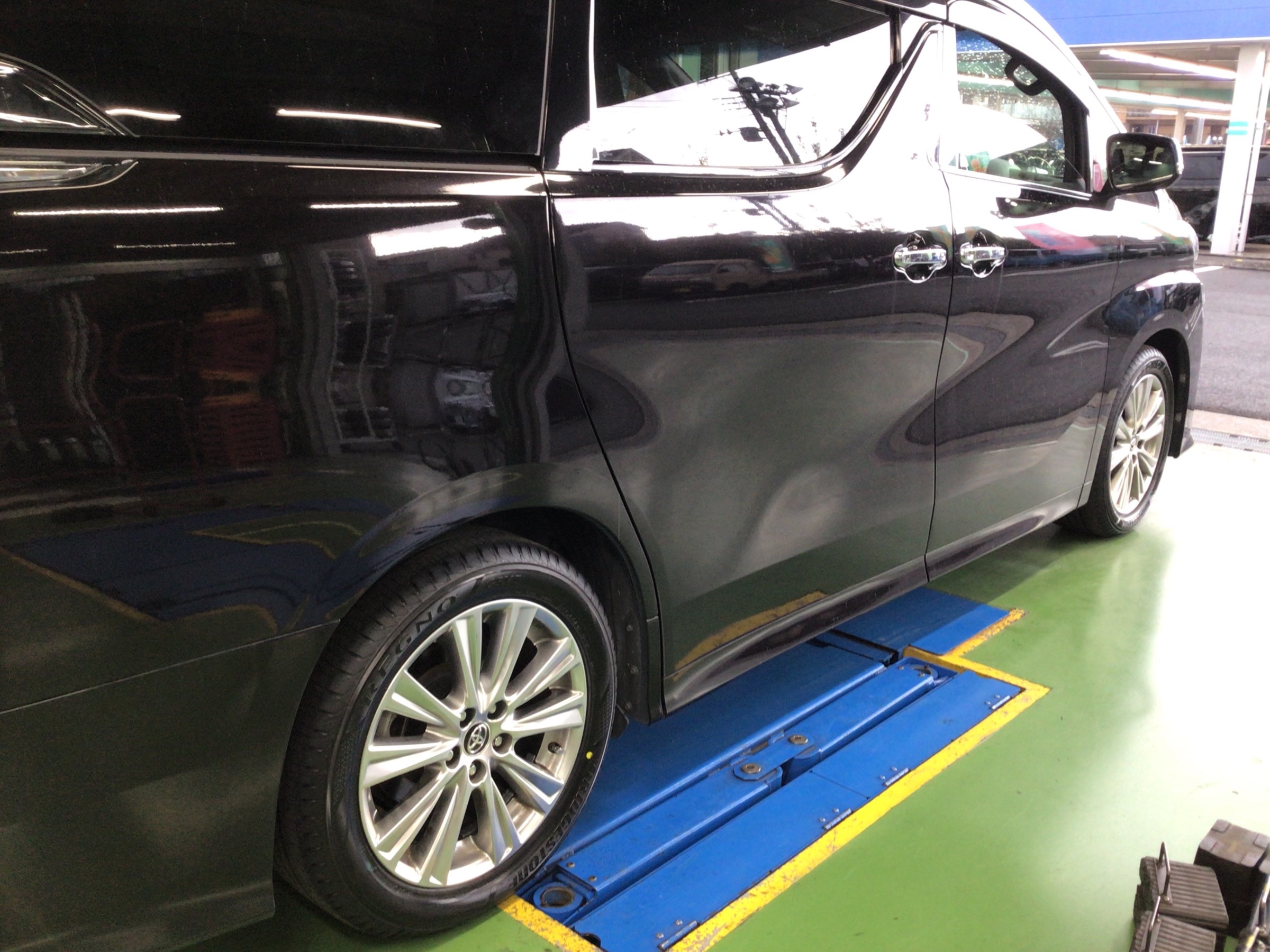 ヴェルファイアでタイヤ交換とアライメント調整(๑>◡<๑)