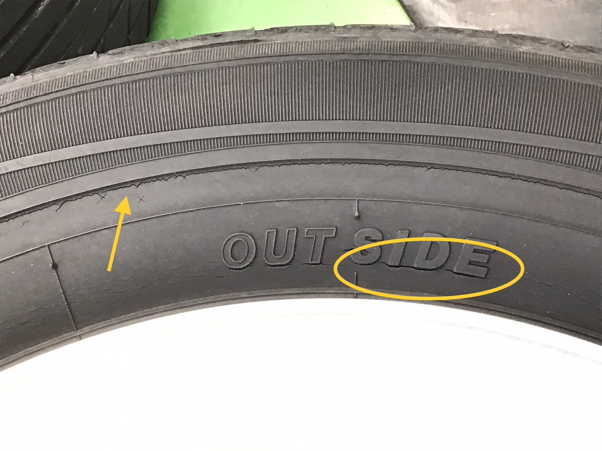 タイヤの側面にひび割れが拡がっていたり