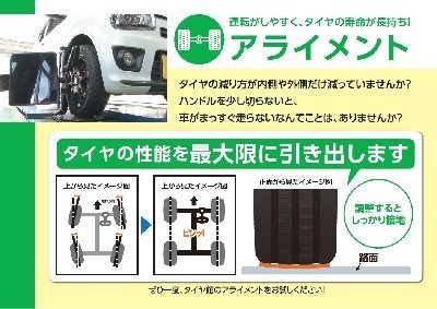 アライメント ポスト 2023年6月18日 普通に使用していても少しずつ角度はズレていきます。・タイヤを新品にした・ローダウンなど足回りを交換した・センターがズレてるなどありましたらご相談ください! カテゴリ:タイヤ関連