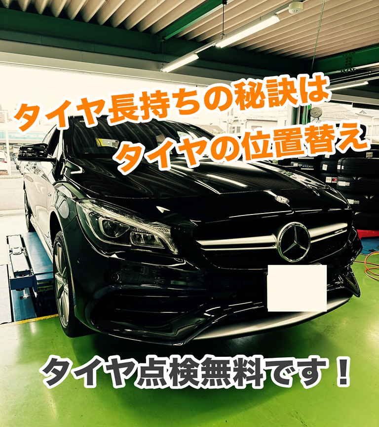 本日は、メルセデスCLA AMGのタイヤローテーション作業を