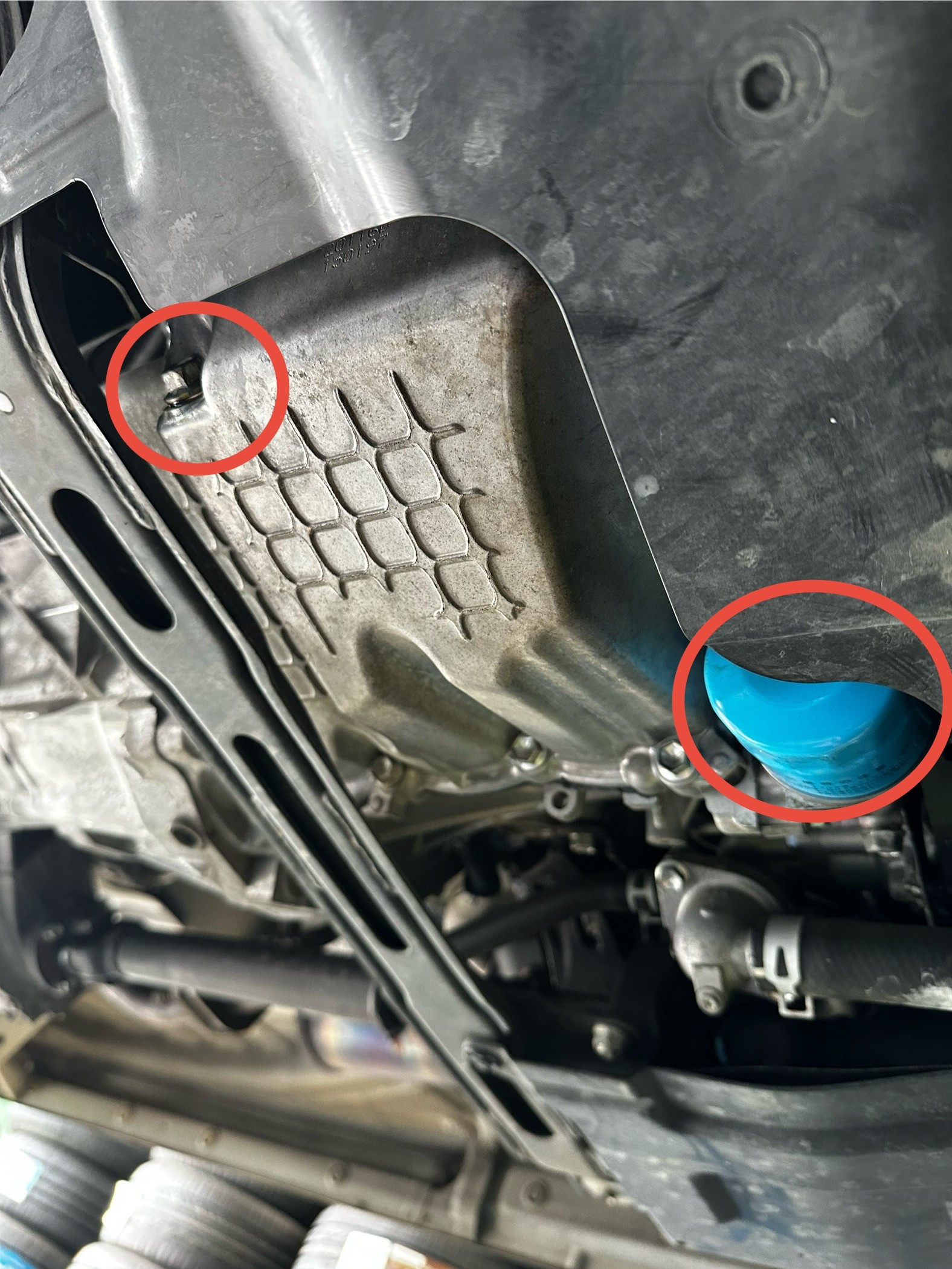 赤丸の部分がオイルドレンとエレメントです。
