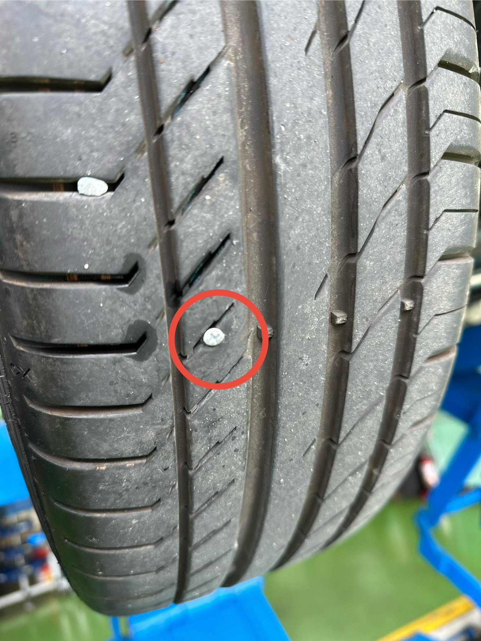 幸いパンク修理で対応可能な位置、刺さり方だったため