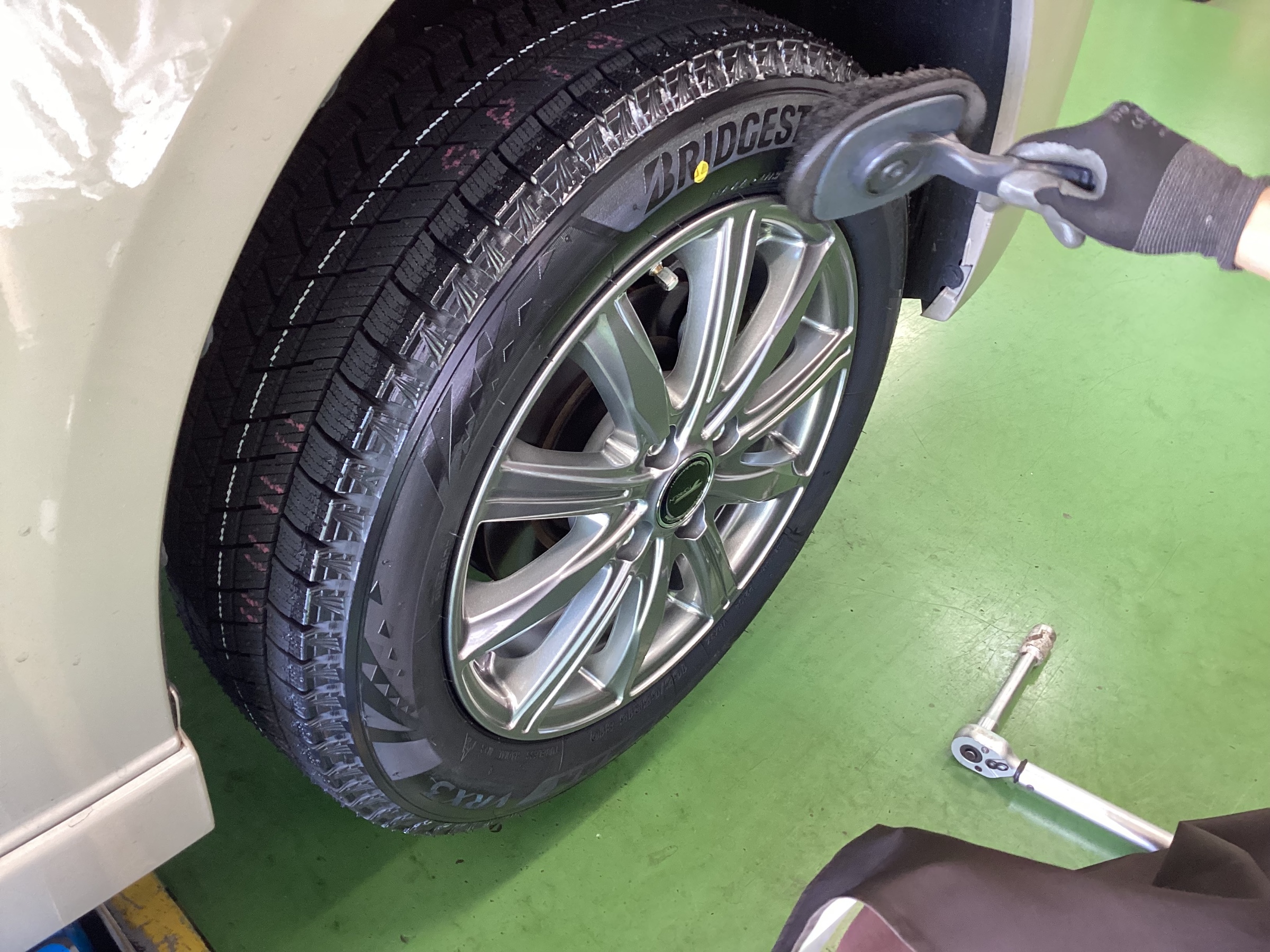 事前にタイヤとアルミホイールを組み上げておりましたので