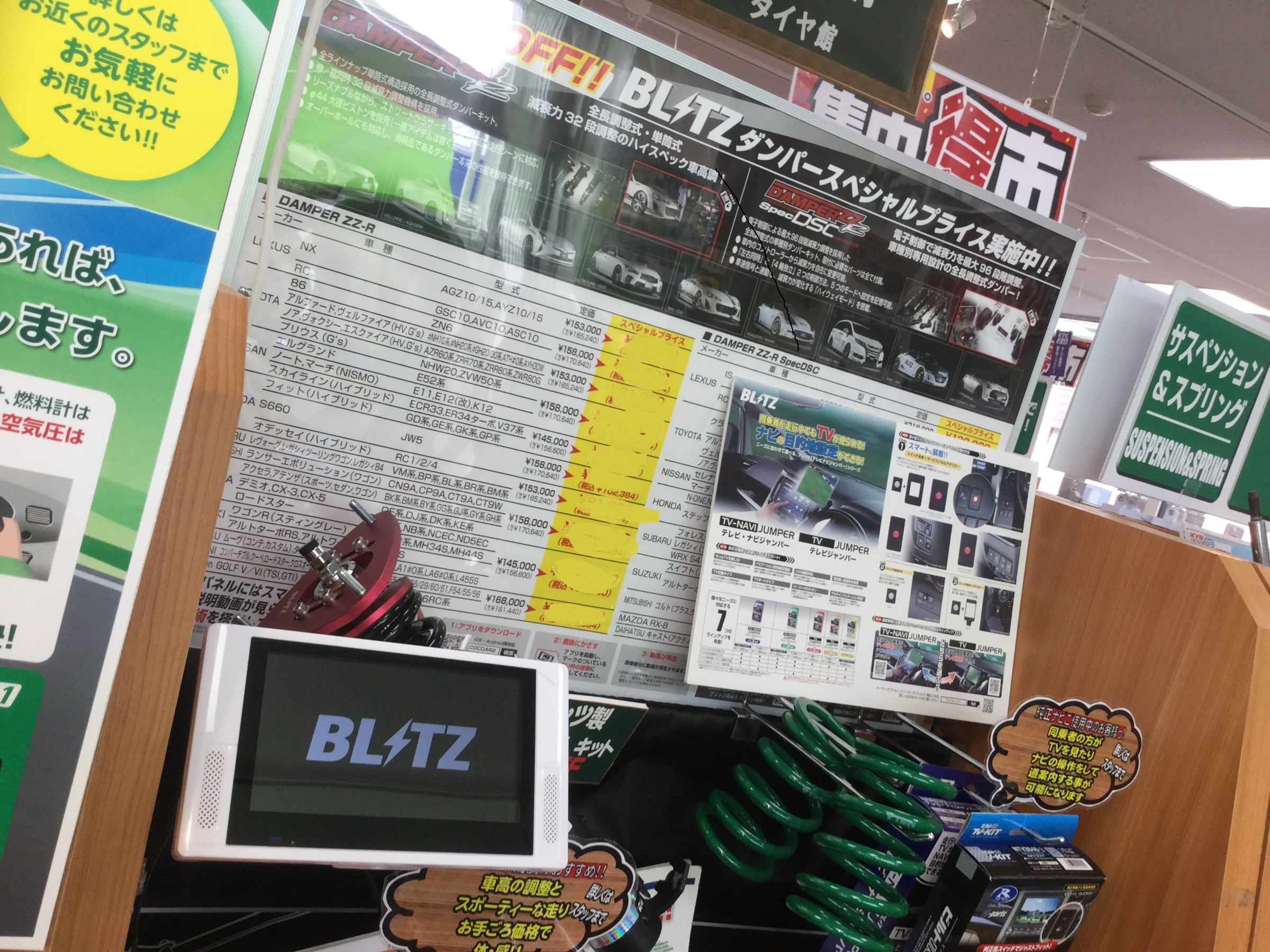 車庫調 ブリッツがお買い得!! ポスト 2017年5月2日 ブリッツのデモカーを試乗しました!! メーカーの名前からしてスポーティーなイメージがありまして 乗り心地は硬いのかなと勝手に思い込んでいましたが~ 試乗した結果!乗り心地はとてもソフトで段差を乗り越えるときも スポーツタイプの車庫調と比べるとよかったですよ~ 値段もお買い求め安いので ミニバン・コンパクト・軽自動車にもお勧めですね!! 車高調をお考え中のお客様、 是非、ご来店ください!!ご相談はお気軽に!!! 担当:石井
