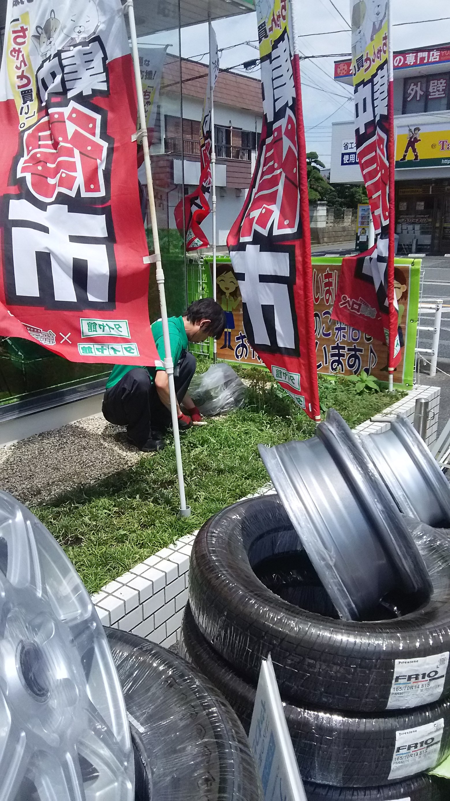 先日、つかの間の晴れ間にお店のロードサイドの草むしりをがんばる店長を激写(*^/□ゝ)カシャ☆