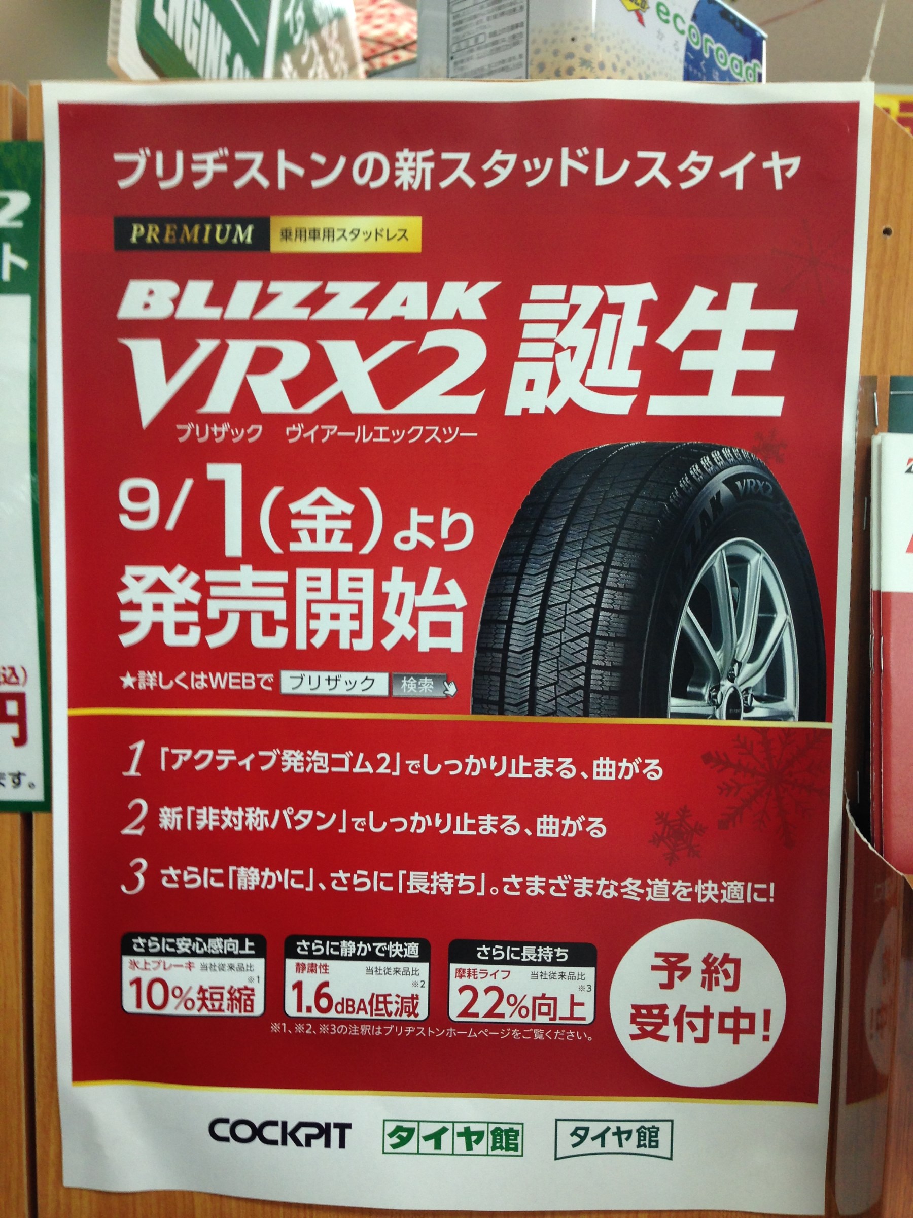 9/1から新商品ブリザックVRX2発売!! ポスト 2017年8月12日 夏ですが、冬の話題です!! スタッドレスタイヤの新商品!!ブリザックからVRX2が9月1日より発売されます。 あっという間に 冬がきます!!新商品をいち早くゲットしちゃいましょう!! 予約お受付してます、装着は冬でも大丈夫!! 予約しておけば安心ですね! BLIZZAKホームページ 担当:石井