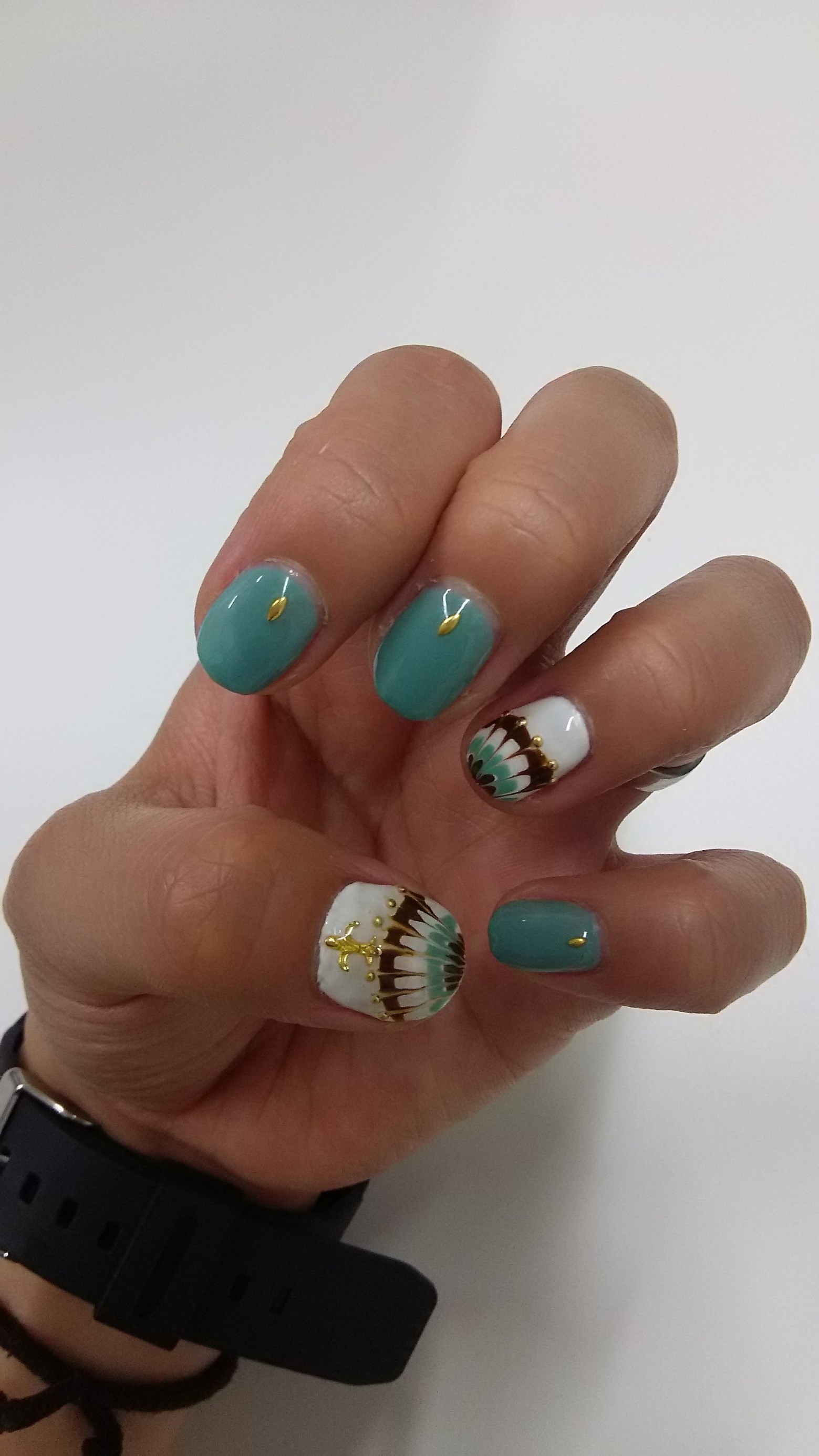 ◎○夏~秋~ネイル○◎ ポスト 2017年8月26日 こんにちゎ。。。 趣味のネイルも夏~秋っぽいネイルに変更! スモーキーグリーンで、一気に秋感♪ ポイントの薬指&親指は茶色を入れたピーコックというデザイン。 残暑厳しいですが、ファッションはさきどり~ですが、 タイヤもさきどり~ まもなく9月1日より新商品スタッドレスVRX2が発売されますよ~ 担当:MAMAサン