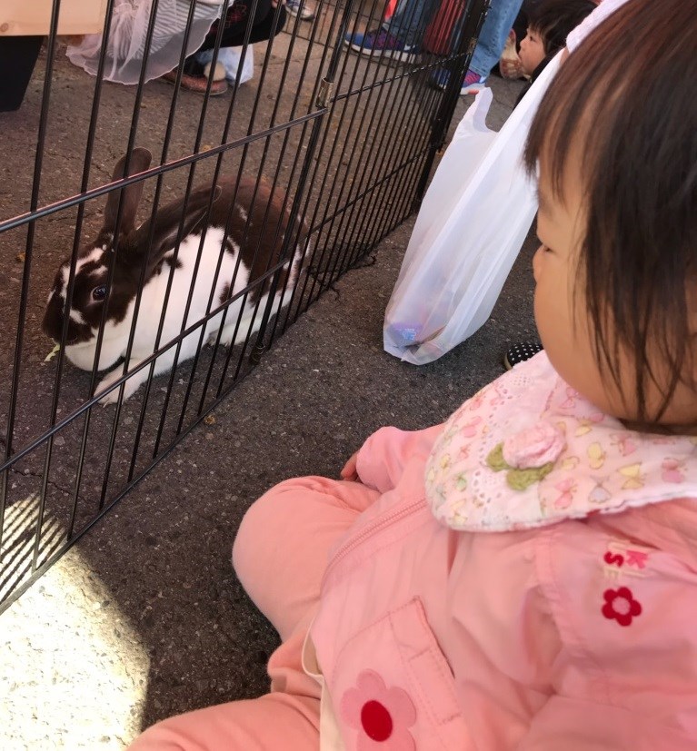 さらには、動物と触れ合えるコーナーがあり、我が家の末っ子チャンはうさぎに大興奮!!!