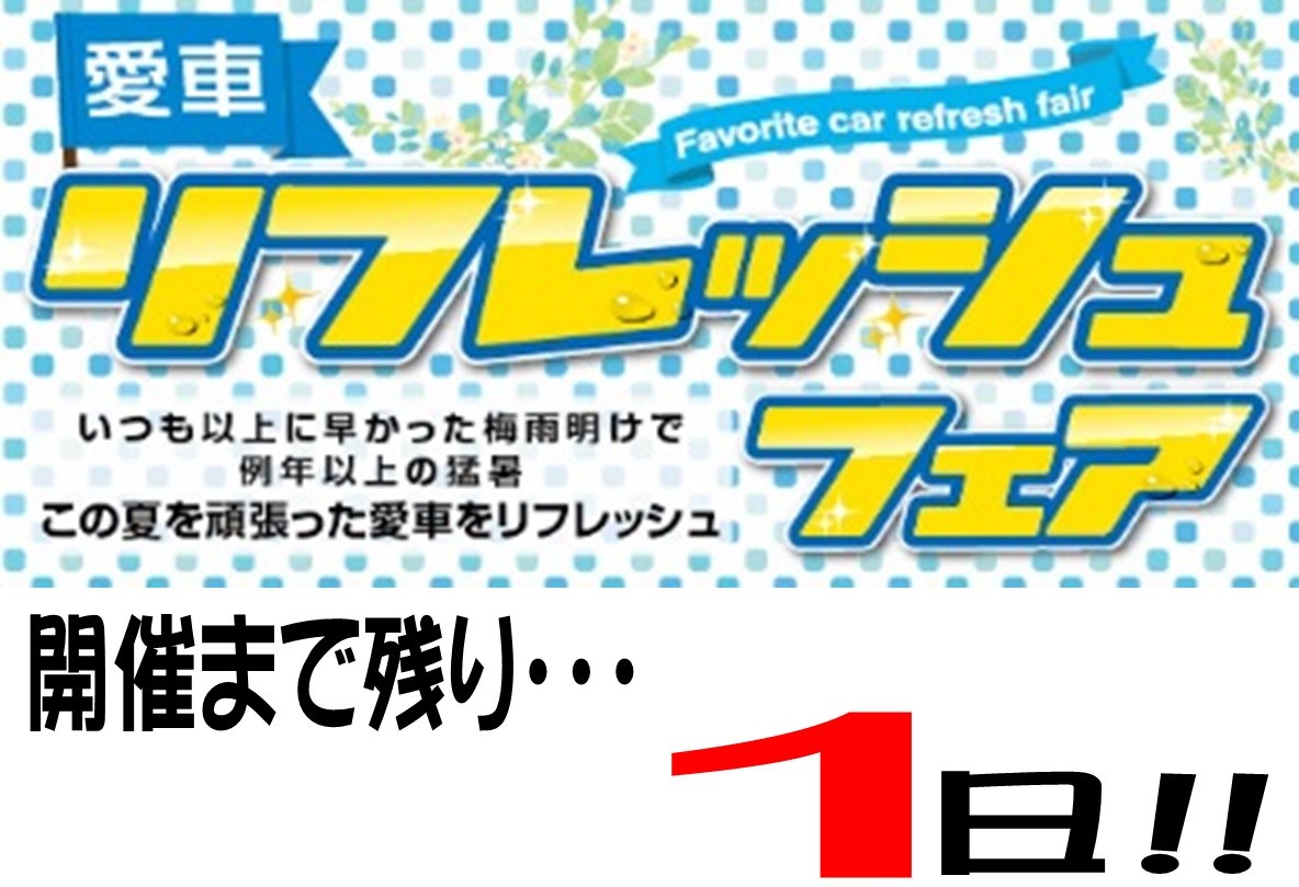 いよいよ明日!! ポスト 2018年9月7日 今年も猛暑の中、頑張ってくれた愛車をリフレッシュしてあげましょう!! 帰省や行楽のために出掛ける前に愛車の準備やメンテナンスはしましたよね? では、使った後のメンテナンスはしましたか? まだの方は、是非このチャンスに愛車をメンテナンスしてリフレッシュしませんか? セール期間は・・・ 9月8日~9月17日までとなります! ご来店お待ちしております。 担当:ナルサカ