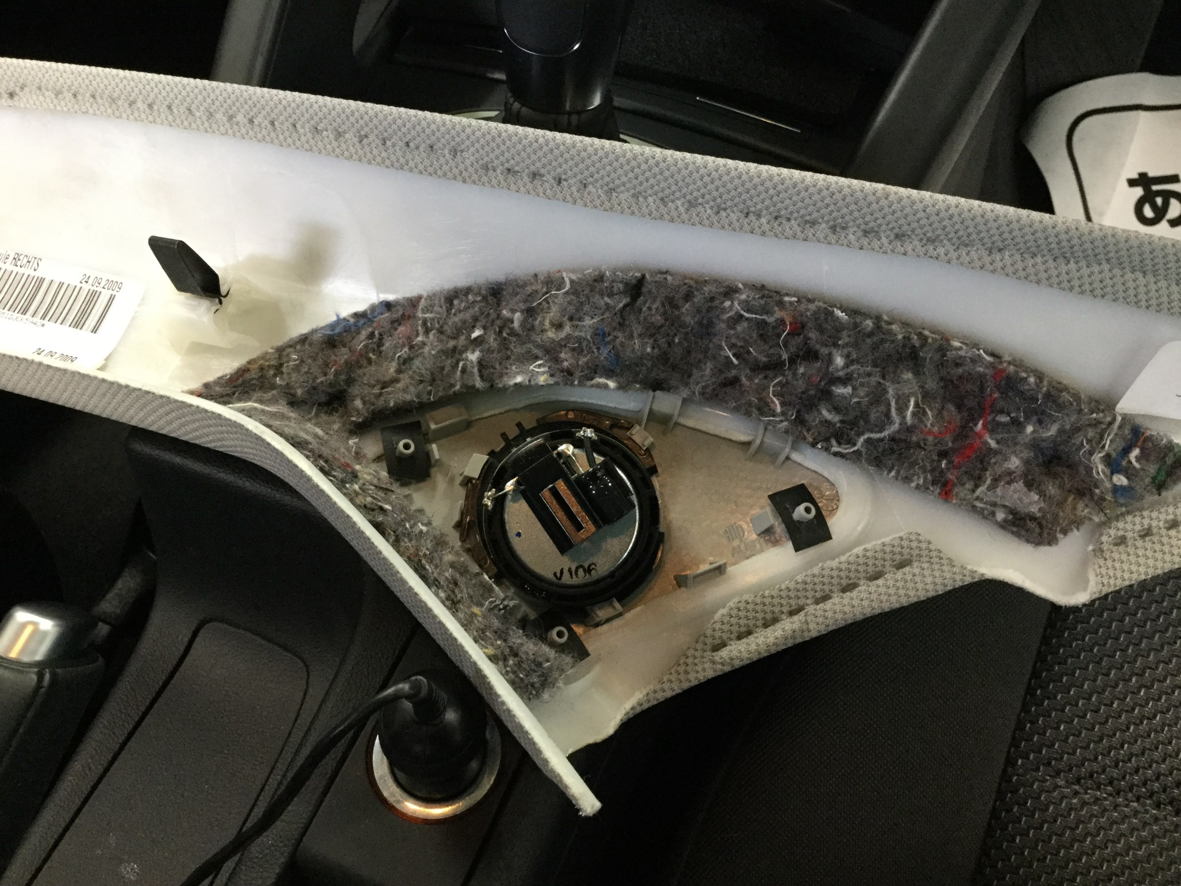 今回はスピーカーでの幅広い音の出方を楽しみたいとのことで、ツィター取り付けはダッシュボードの上に台座ごと