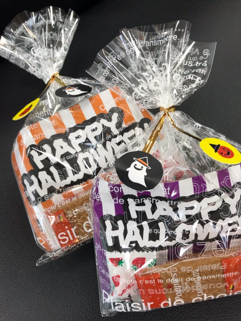 HAPPYハロウィン(┓゜A゜)┓★☆★ ポスト 2018年10月4日 こんにちは~ 10月に入り今年のハロゥインの仮装を子どもと相談中です。。。 お菓子のパッケージも可愛いハロウィンバージョンがたくさんあって 思わずお友達に配りたくなっちゃう♪~♪~♪ で、当店では、お客様にお配りしているポケットティッシュにお菓子を 添えてオリジナルのハッピーハロウィン~とプレゼント☆ 担当:MAMAサン
